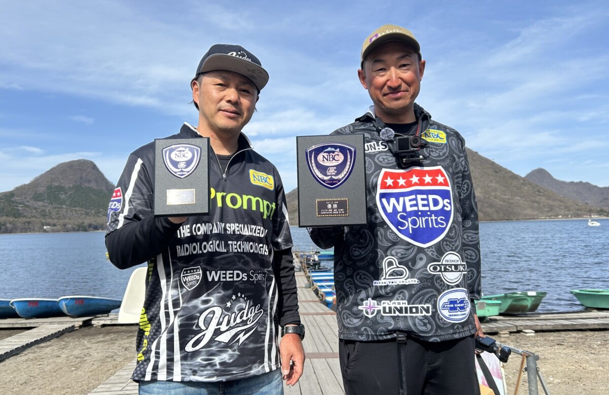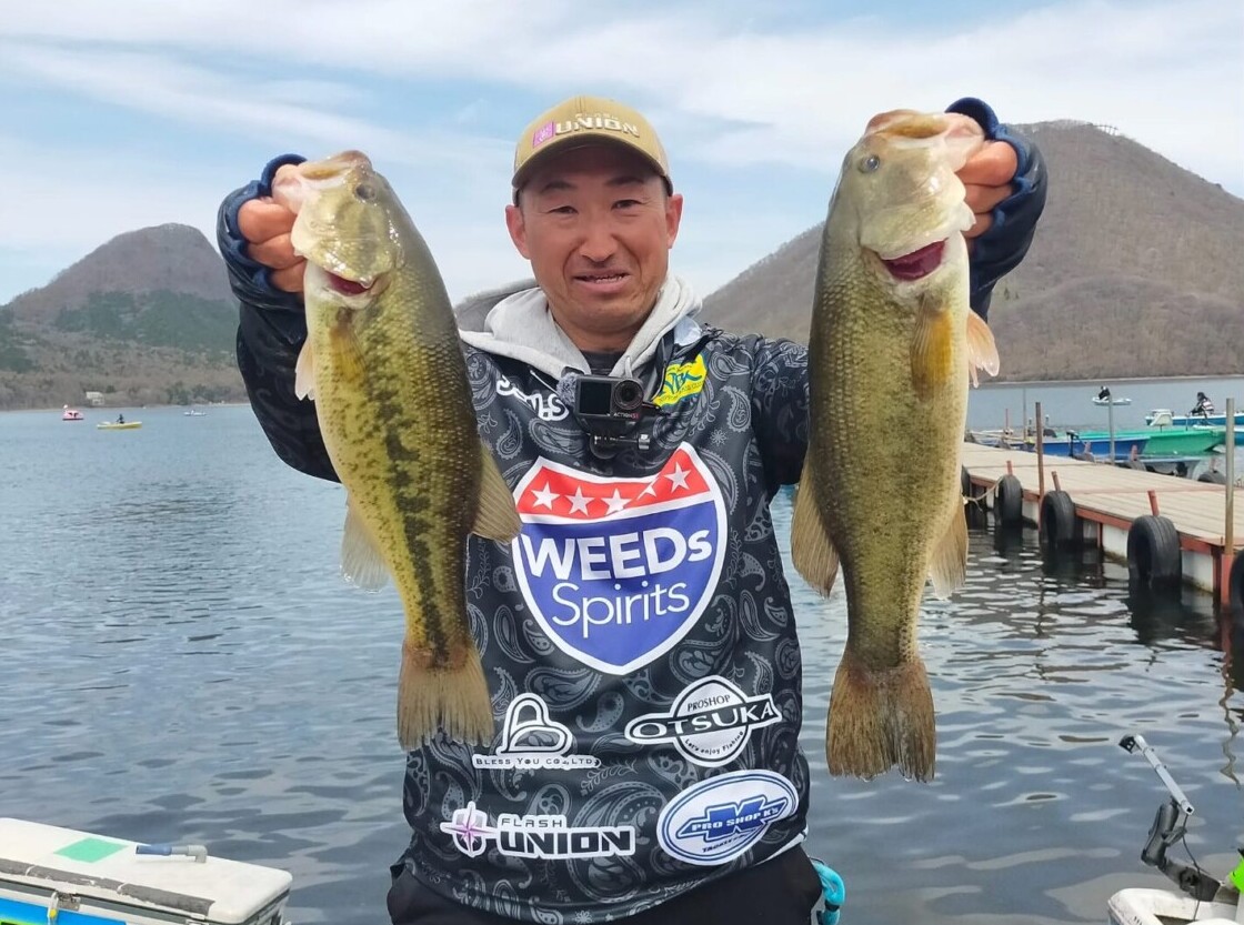 過去にない減水による水位低下の中、シャローではキーパーサイズは釣れるがウエイトが中々上がらない状態でスポーニングを意識しはじめた大きい個体をスポーニングエリアの一段下で攻略したWEEDsSpiritsフィールドスタッフの神流神こと櫻井選手と山田選手でワンツーフィニッシュ!